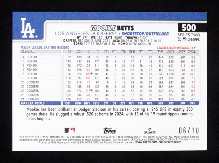 Mookie Betts 2025 Topps Series Two #500 #06/10
