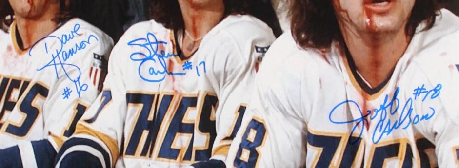 Jeff Carlson, Steve Carlson & David Hanson Signed Hanson Brothers "Slap Shot" 16x20 Photo (Beckett)