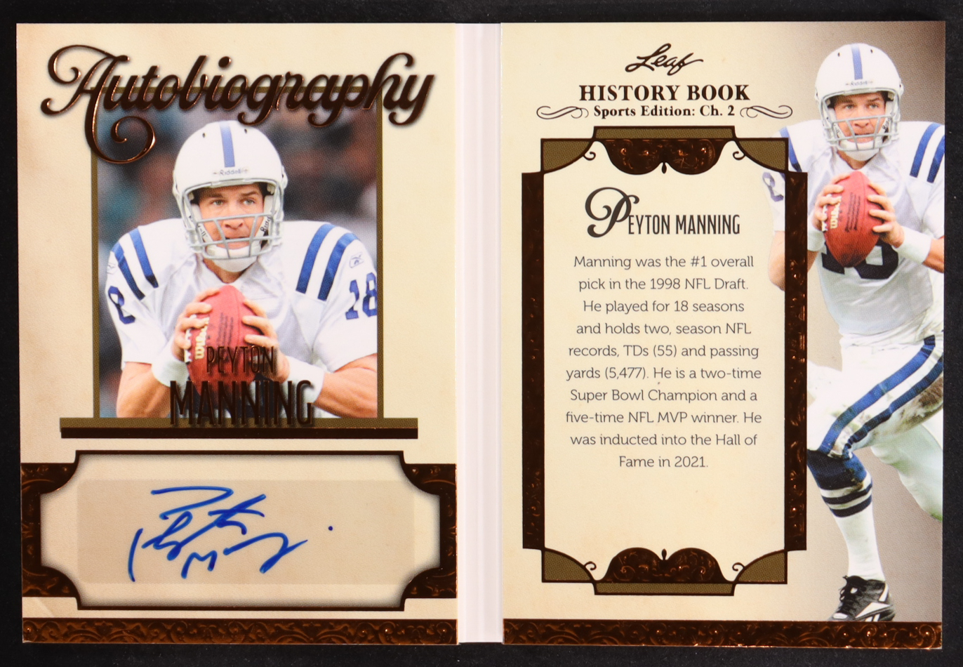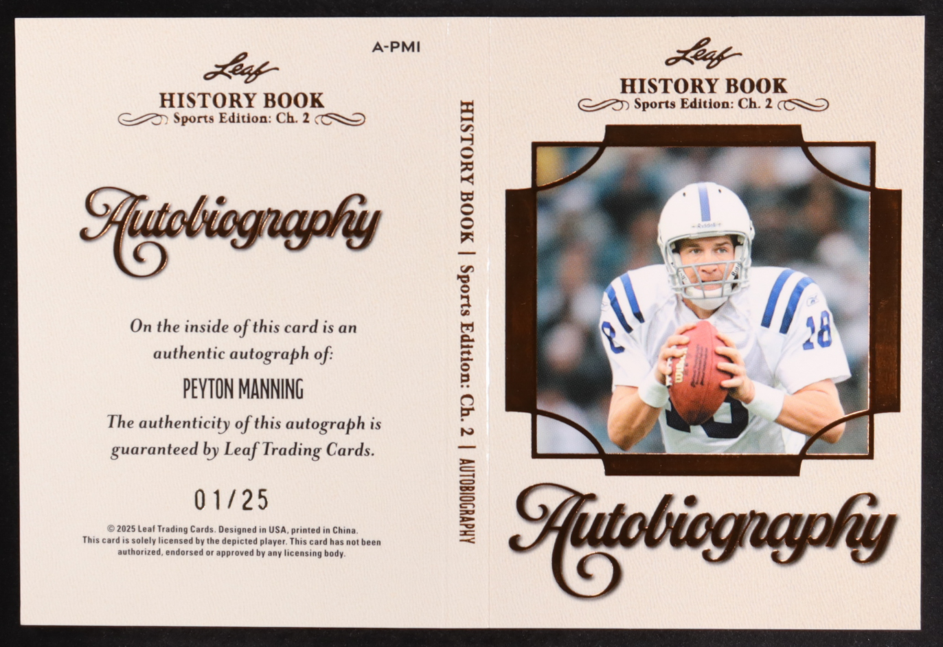 Peyton Manning 2025 Leaf History Book Sports Edition Chapter 2 Autobiography Bronze Foil #APM1 #01/25