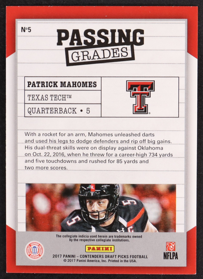 Patrick Mahomes II 2017 Panini Contenders Draft Picks Passing Grades #5 RC