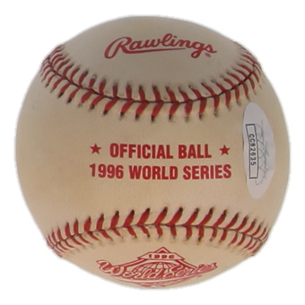 Rawlings Official 1996 World Series baseball has been hand-signed by Ryan Klesko (Atlanta Braves). Please note, the baseball is naturally toned.