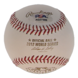 Rawlings Official 2012 World Series Baseball. Hand-signed by Bruce Bochy (San Francisco Giants). Please note, there are minor stains throughout the baseball.