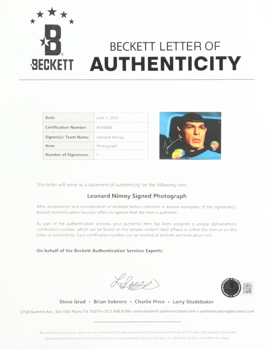 Leonard Nimoy Signed LE "Star Trek" Photo Plaque (Beckett)
