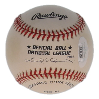 Rawlings Official National League Baseball. Hand-signed by Javy Lopez (Atlanta Braves). Please note, the baseball is stained and naturally toned.