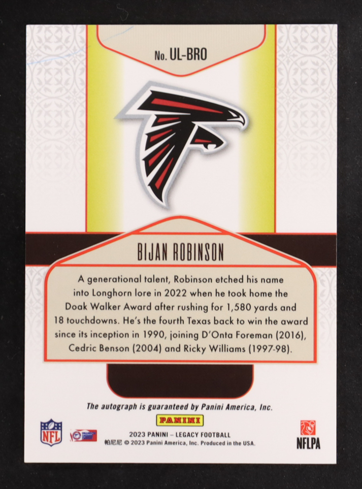 Bijan Robinson 2023 Panini Legacy Under the Lights Autographs #7 RC