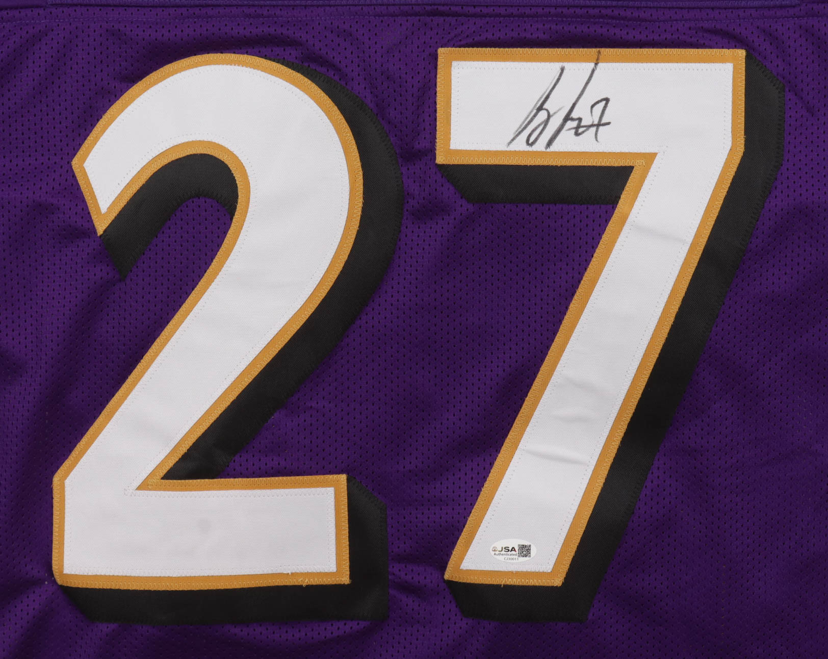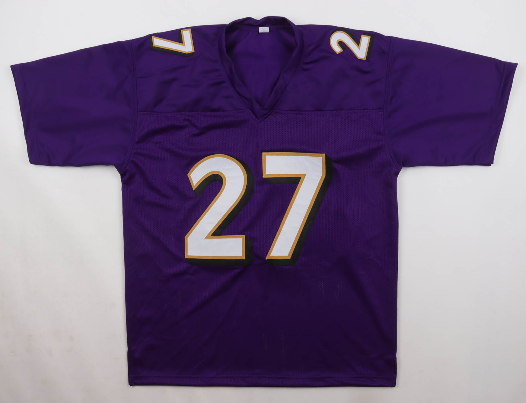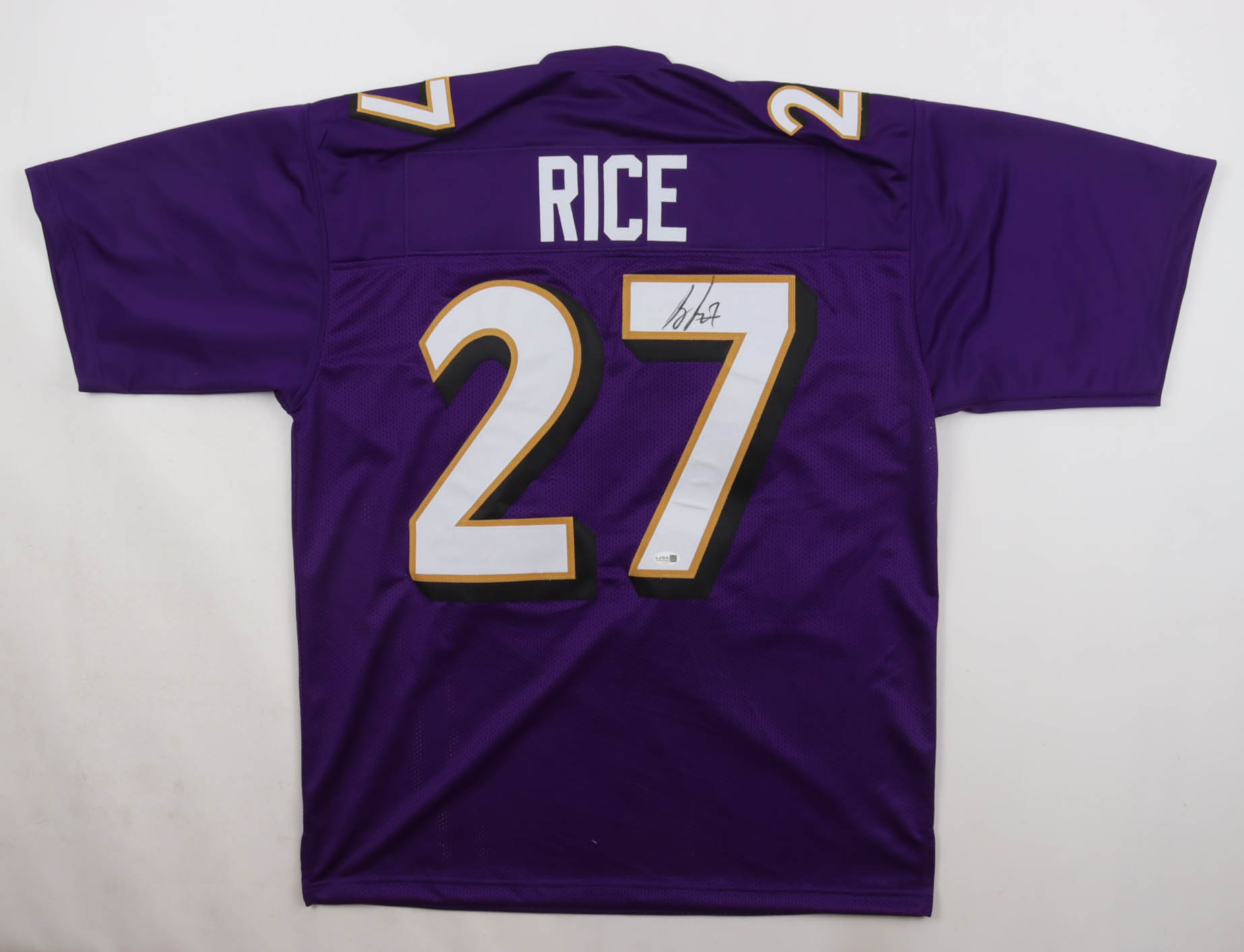 Custom jersey with everything sewn on, size XL. Hand-signed by Ray Rice.