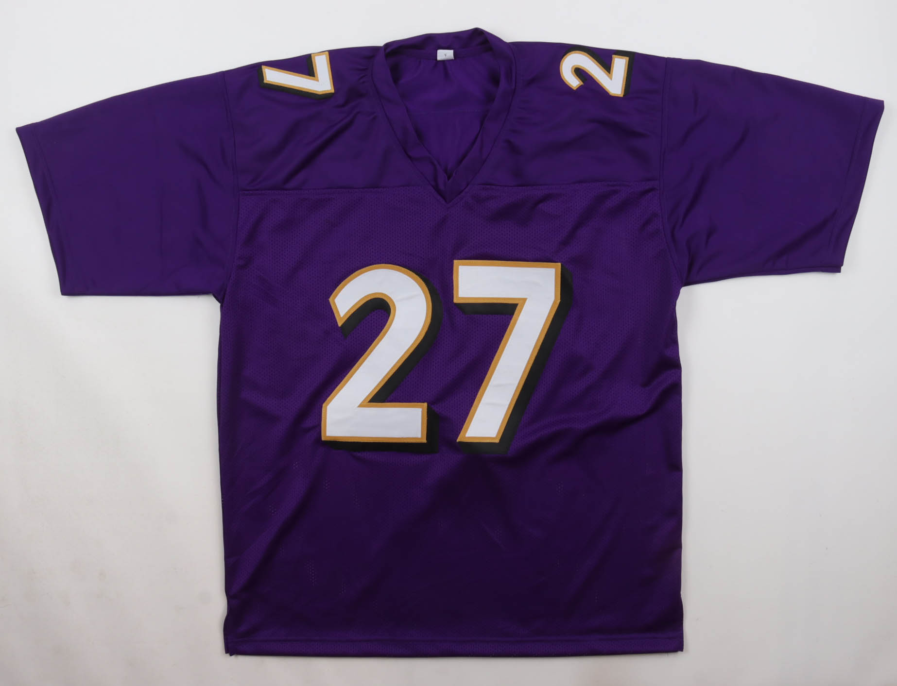 Custom jersey with everything sewn on, size XL. Hand-signed by Ray Rice.
