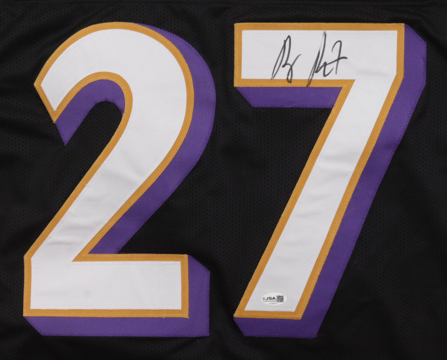 Custom jersey with everything sewn on, size XL. Hand-signed by Ray Rice.