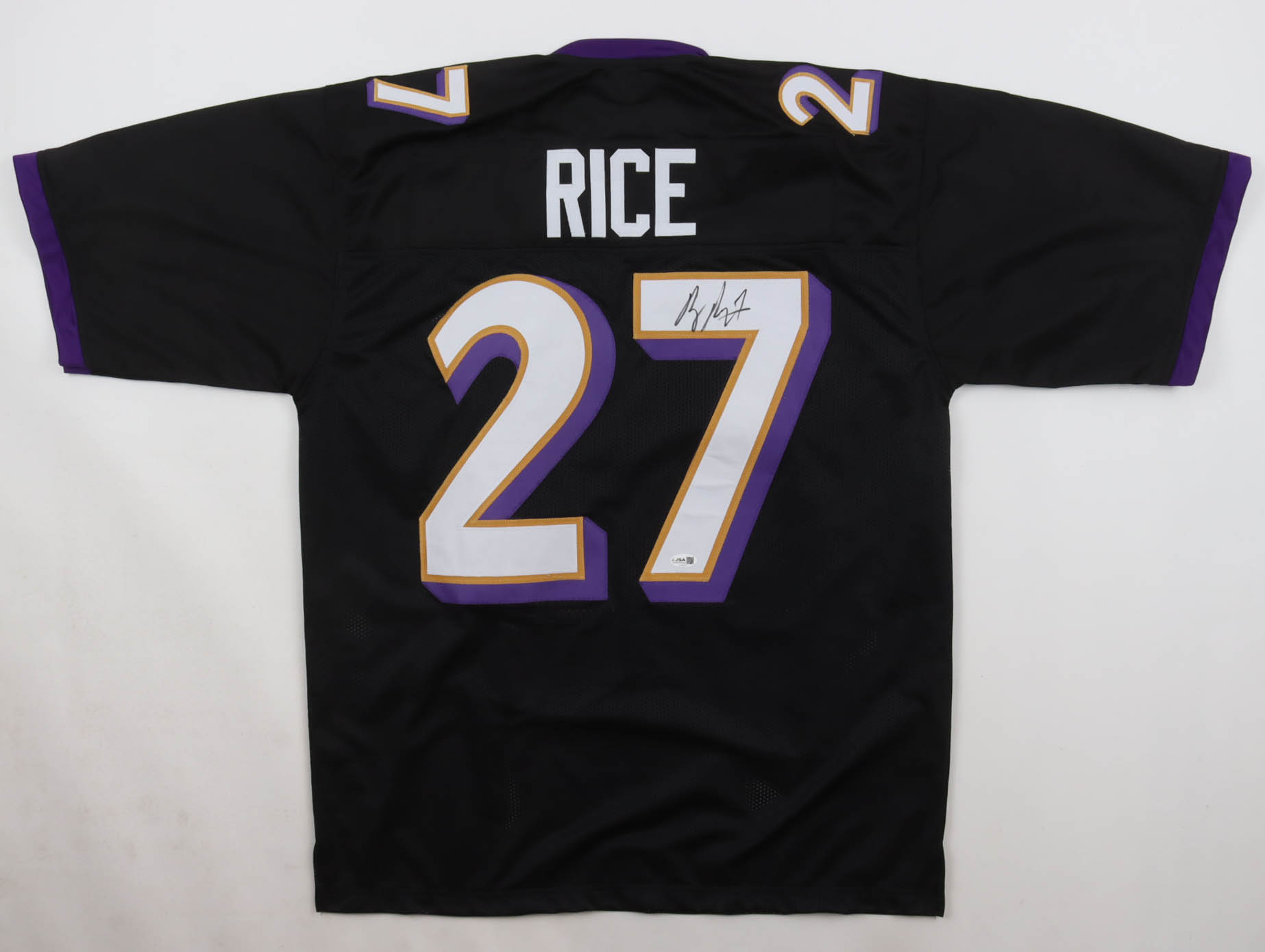 Custom jersey with everything sewn on, size XL. Hand-signed by Ray Rice.