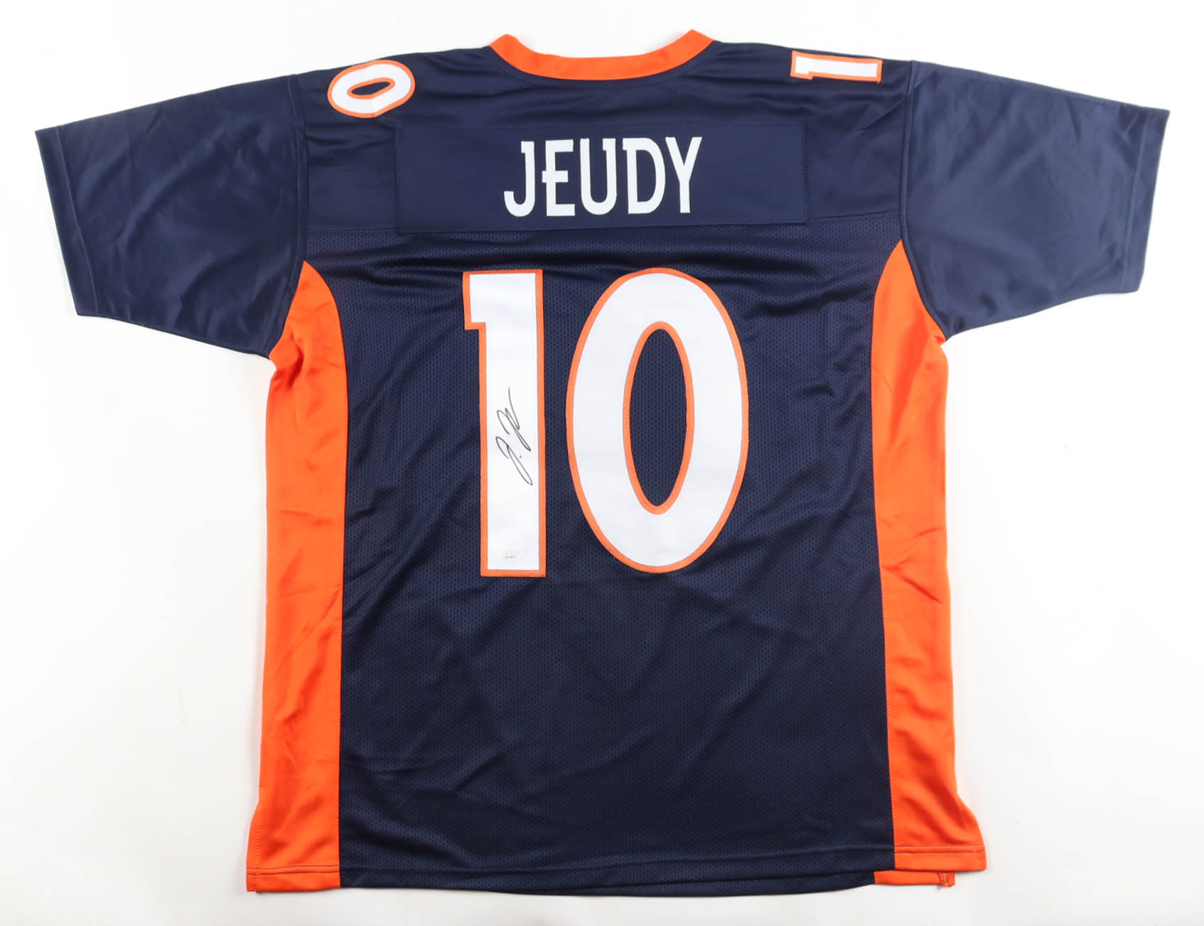 Custom jersey with everything sewn on, size XL. Has been hand-signed by Jerry Jeudy.