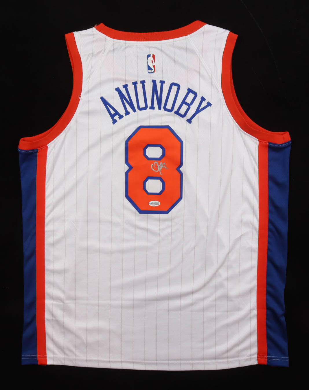 Nike jersey. Everything pressed on, size 52. Hand-signed by OG Anunoby (New York Knicks).