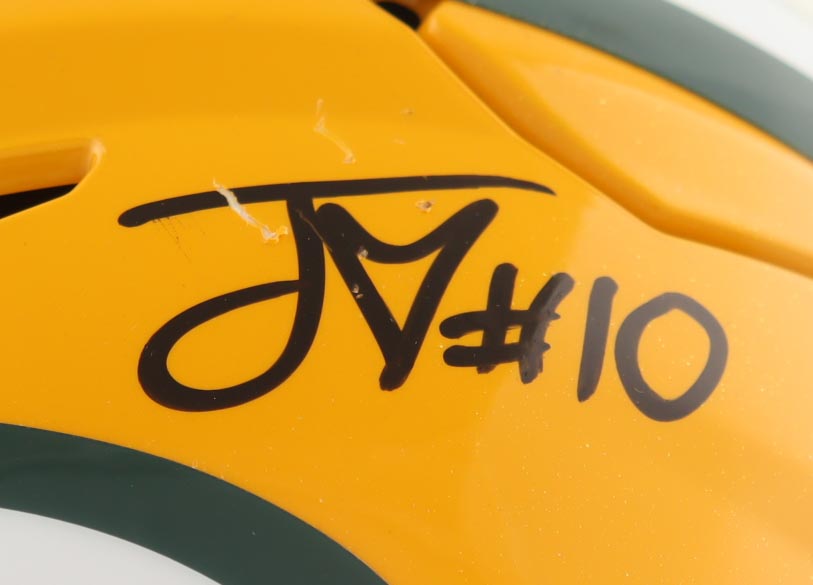 Riddell Green Bay Packers mid-sized SpeedFlex helmet has been hand-signed by Jordan Love.