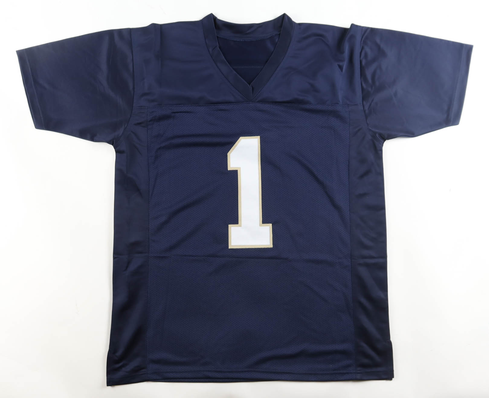 Custom jersey with everything sewn on, size XL. Hand-signed by Lou Holtz.