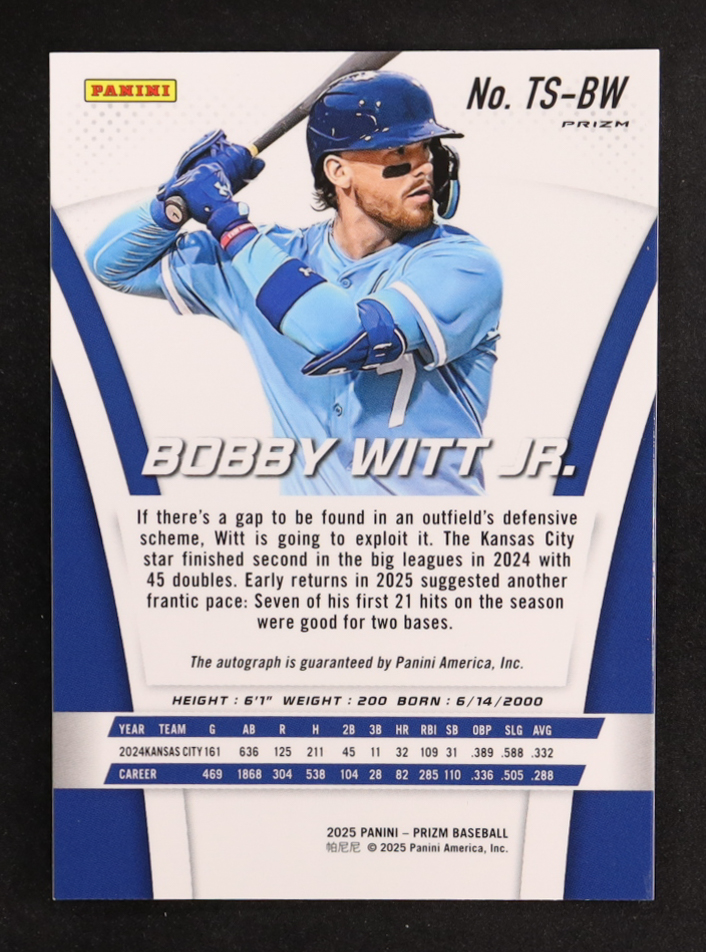 Bobby Witt Jr. 2025 Panini Prizm Throwback Signatures #10