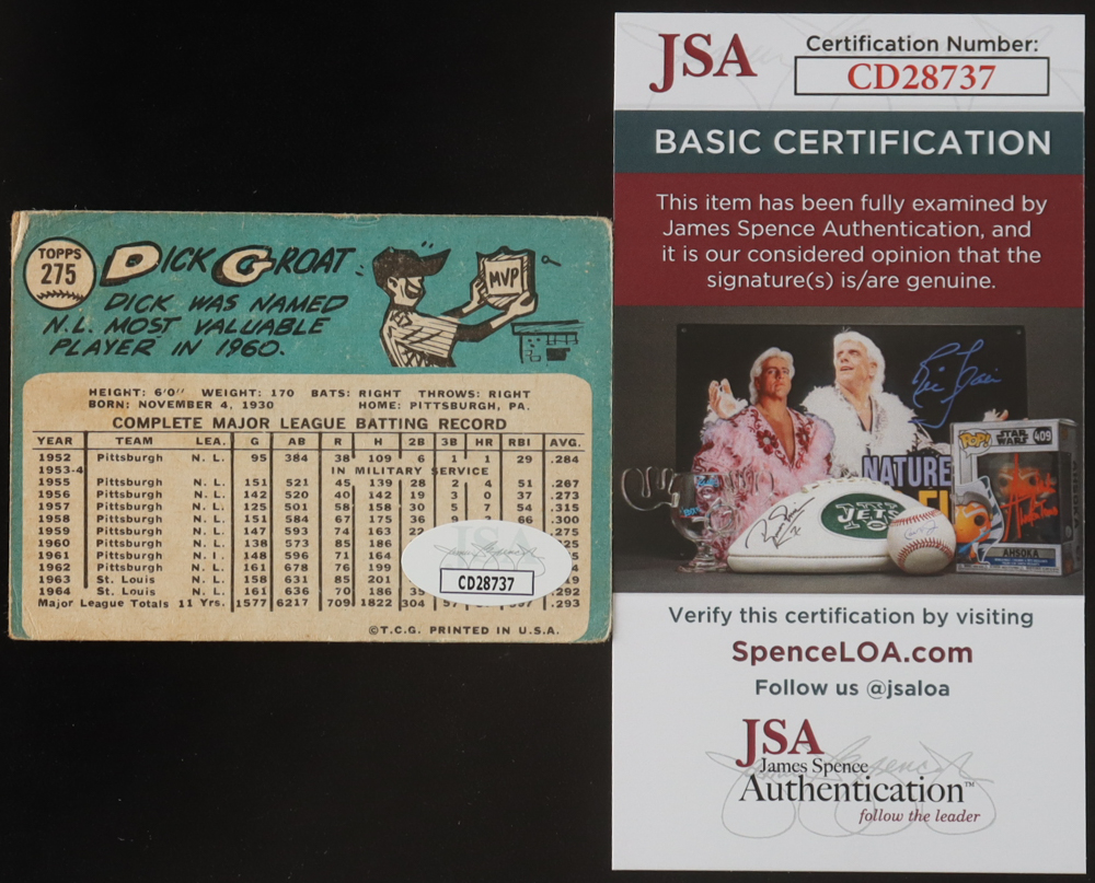 Card has been hand-signed by Dick Groat (D. 2023, Pittsburgh Pirates). Please see photos for details regarding the condition of the card.