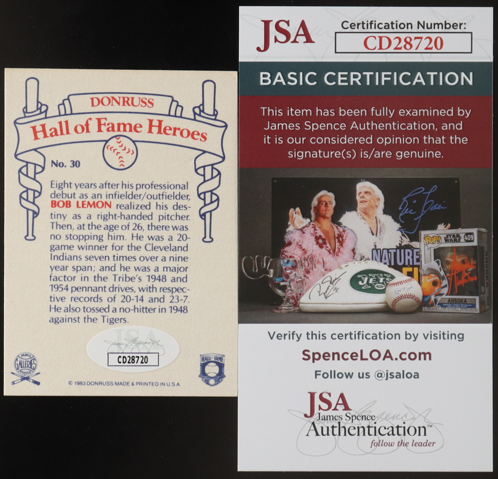 Bob Lemon Signed 1983 Donruss HOF Heroes #30 (JSA)
