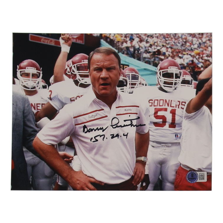 Barry Switzer Signed Oklahoma Sooners 8x10 Photo Inscribed "157-29-4" (Beckett)