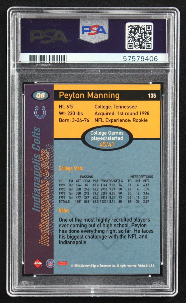 Peyton Manning 1998 Collector's Edge First Place #135 RC (PSA 9)