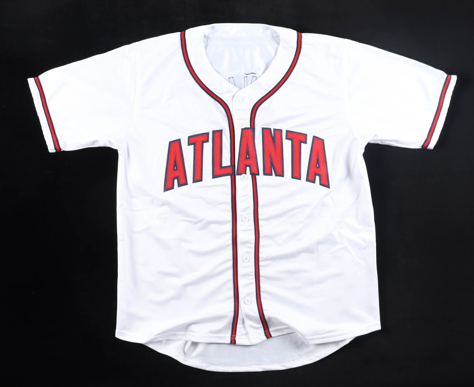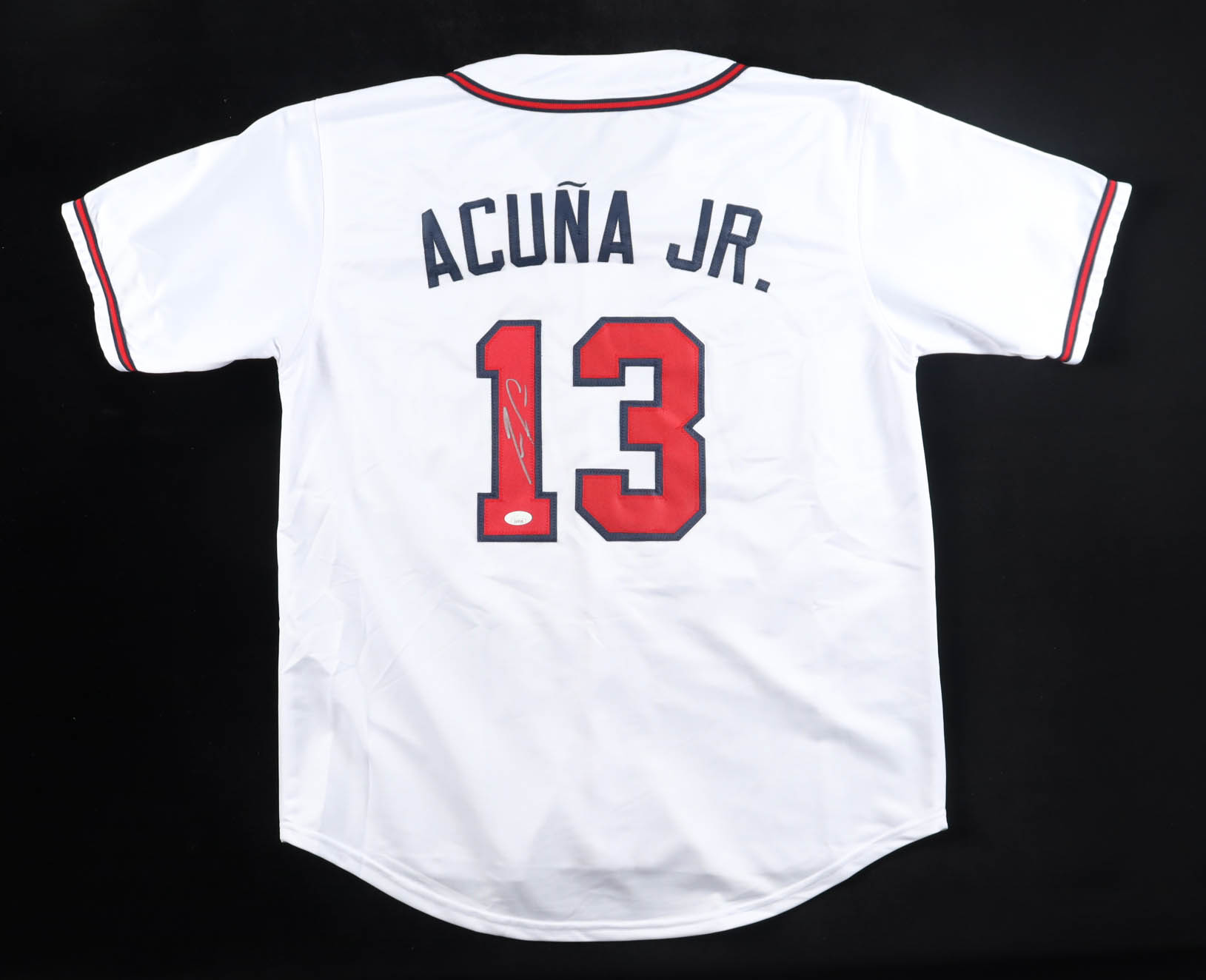 Custom jersey with everything sewn on, size XL. Hand-signed by Ronald Acuna Jr.