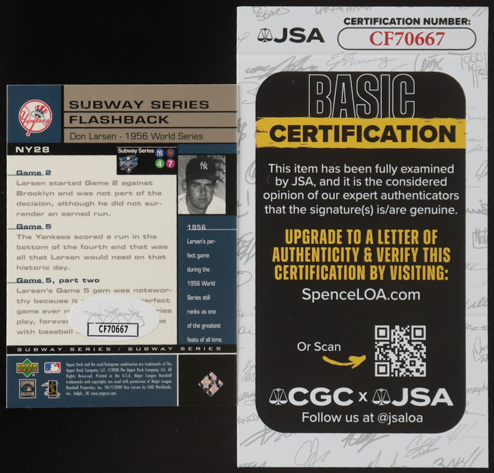 Don Larsen Signed 2000 Upper Deck Yankees Legends #26 (JSA)