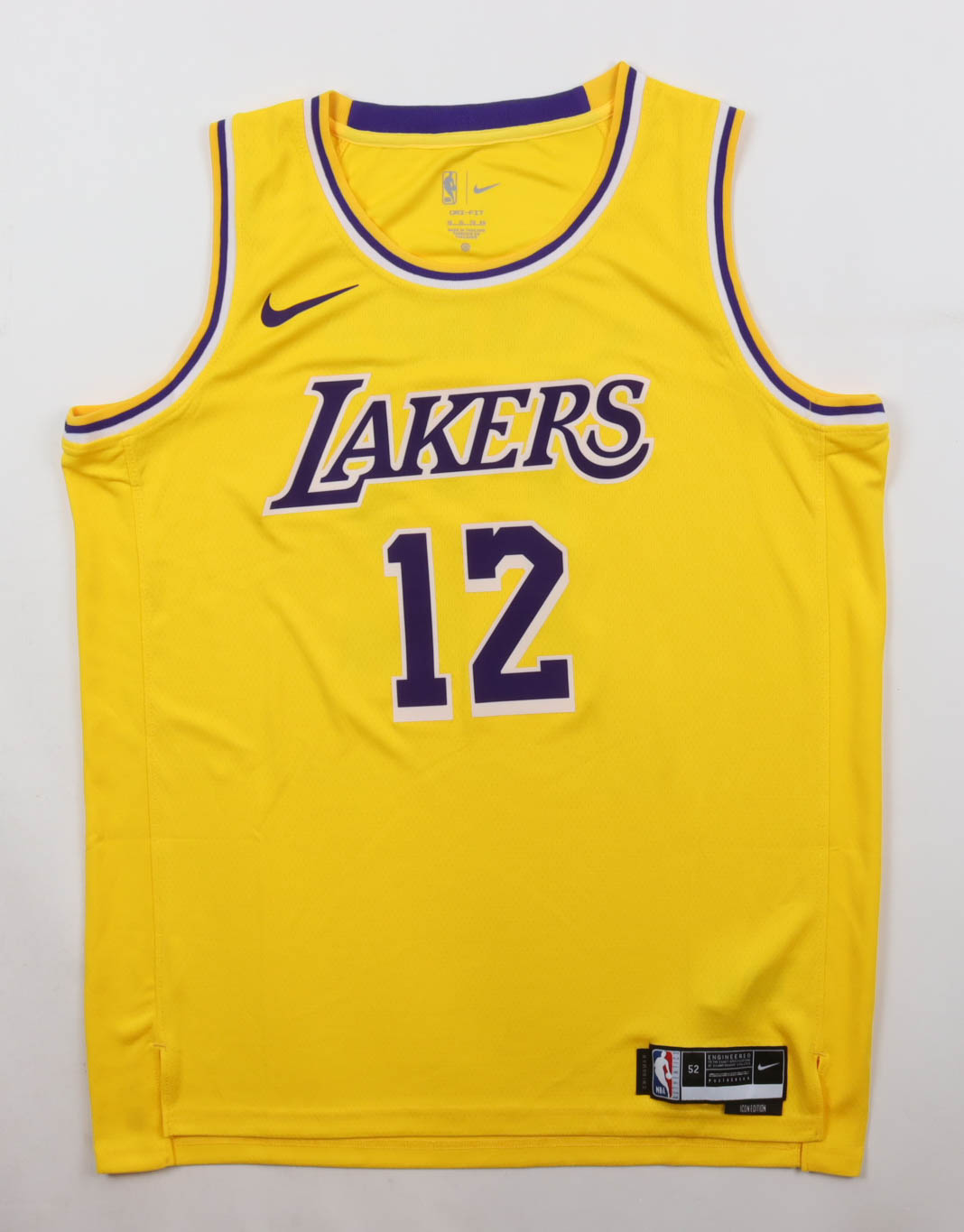 Nike authentic jersey with everything pressed on, size 52. Hand-signed by Jake LaRavia (Los Angeles Lakers).