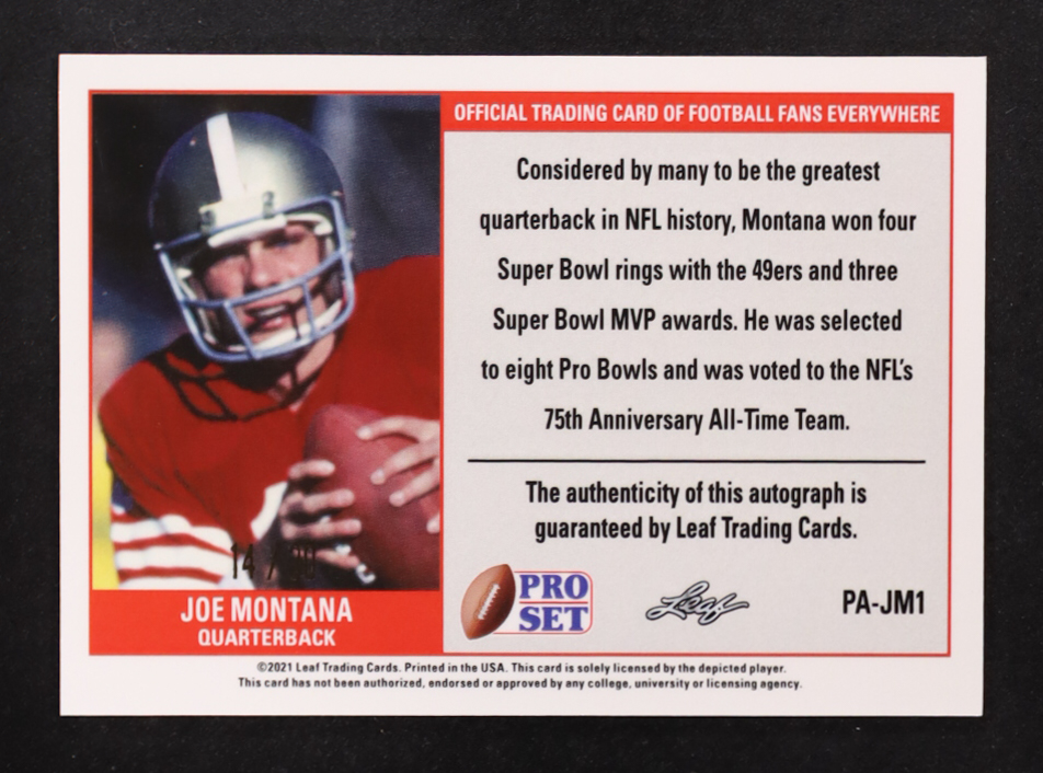 Joe Montana 2021 Leaf Pro Set Metal Autographs Crystals Purple #PAJM1 #14/30