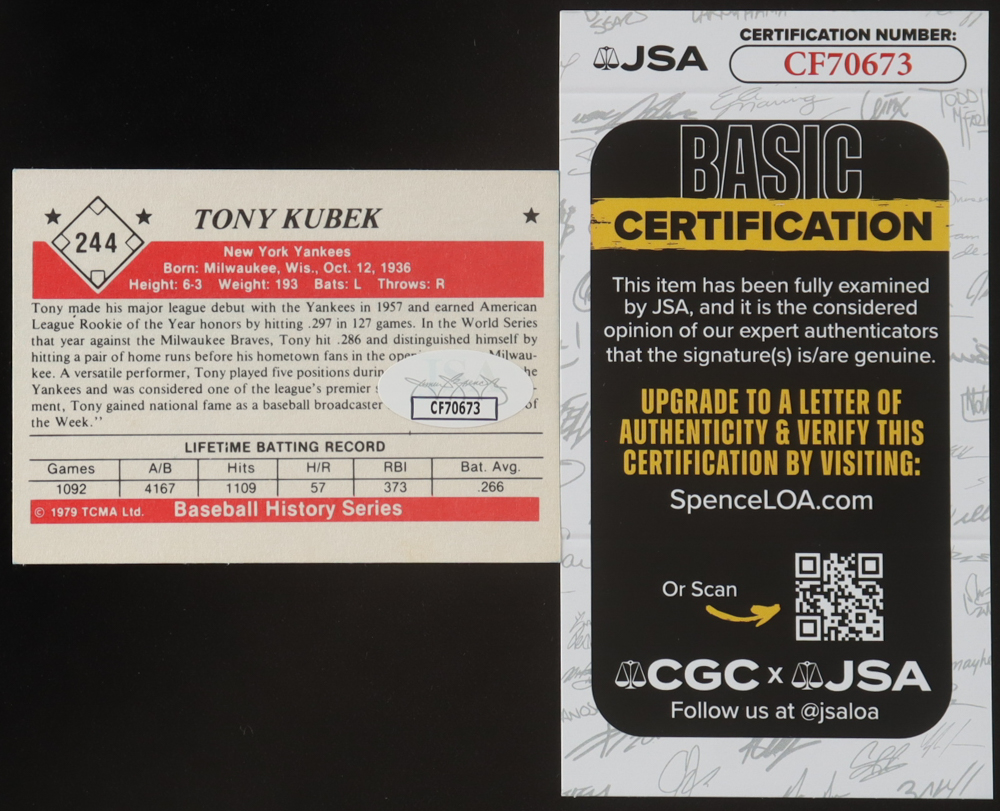 Tony Kubek Signed 1979 TCMA The 50's #244 (JSA)