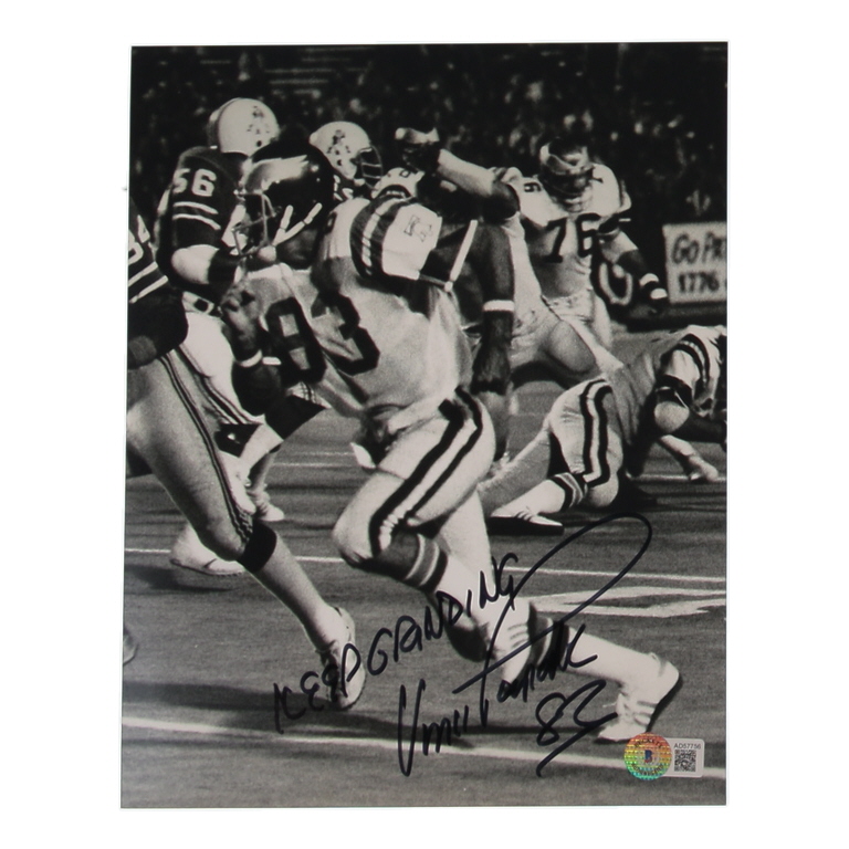 Photo measures 8" x 10" in size and has been hand-signed and inscribed by Vincent Papale (Philadelphia Eagles).