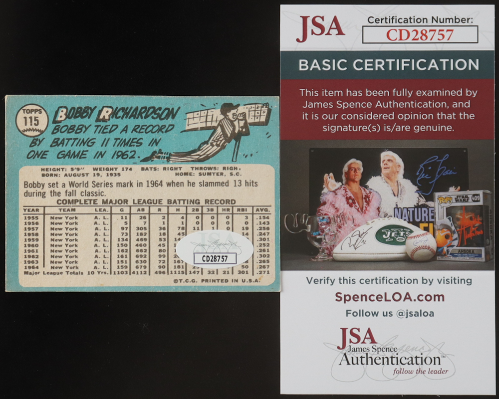 Bobby Richardson Signed 1965 Topps #115 (JSA)