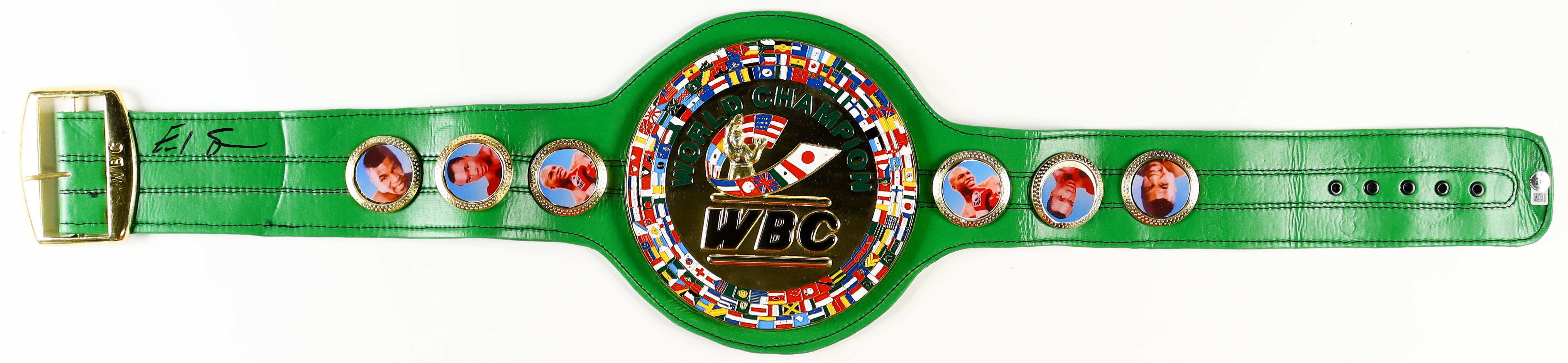 Full-Size WBC replica boxing championship belt measures approximately 49" in length. Hand-signed by Errol Spence Jr.