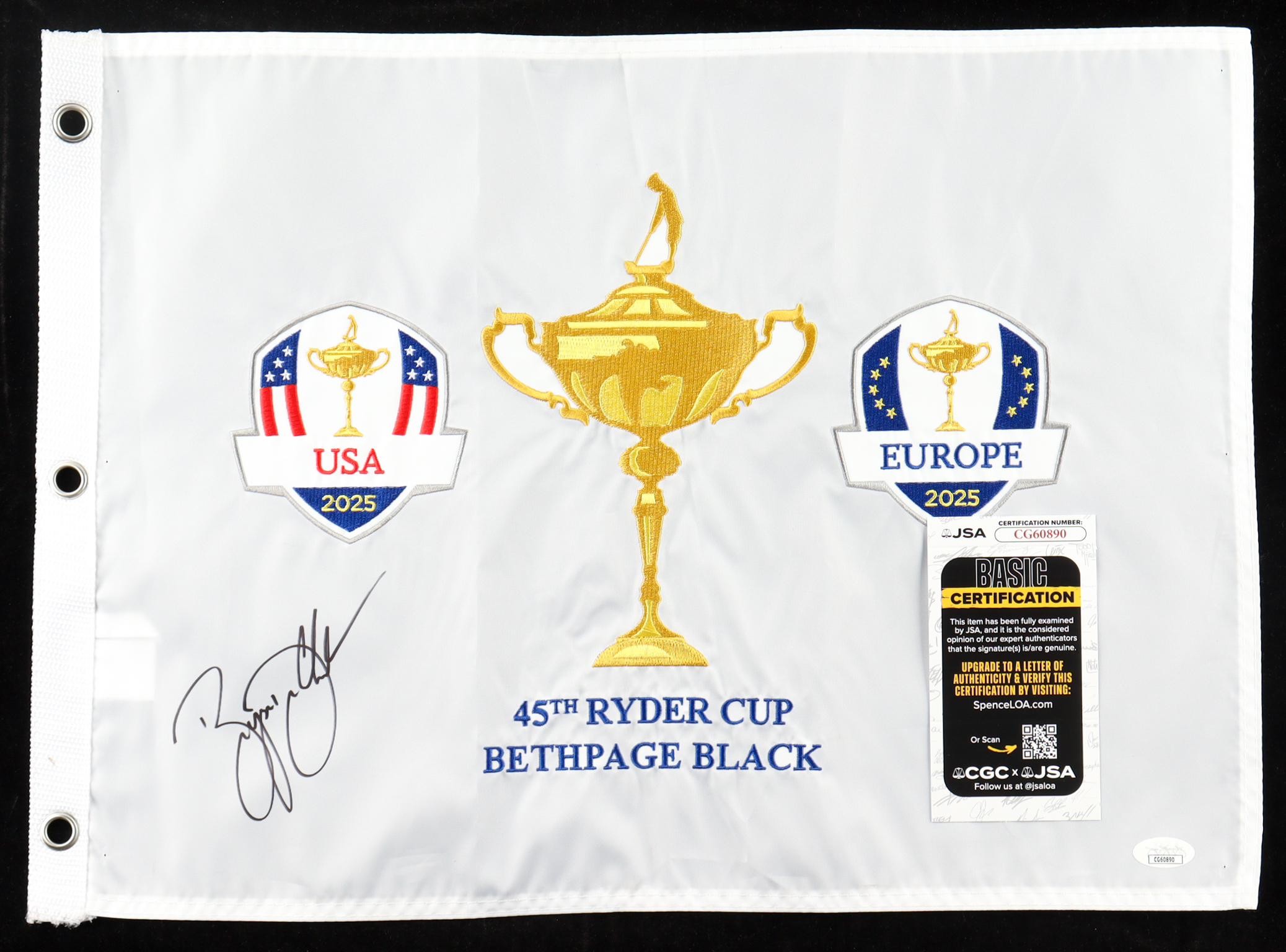 Bryson DeChambeau Signed 2025 Ryder Cup Golf Pin Flag (JSA)