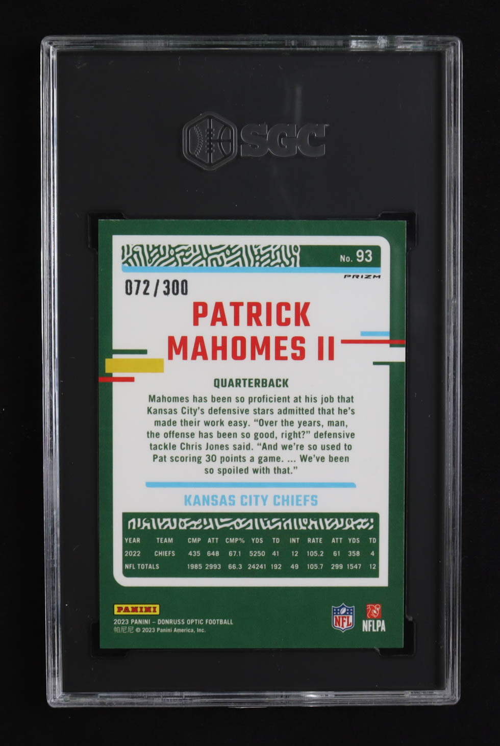 Patrick Mahomes II 2023 Donruss Optic Wave #93 #072/300 (SGC 10)