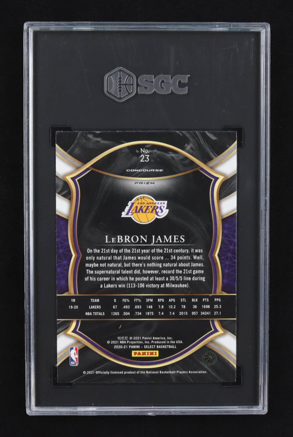 LeBron James 2020-21 Select Prizms Blue #23 (SGC 10)