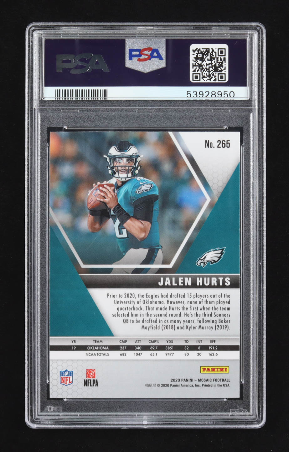 Jalen Hurts 2020 Panini Mosaic #265 DEB RC (PSA 10)