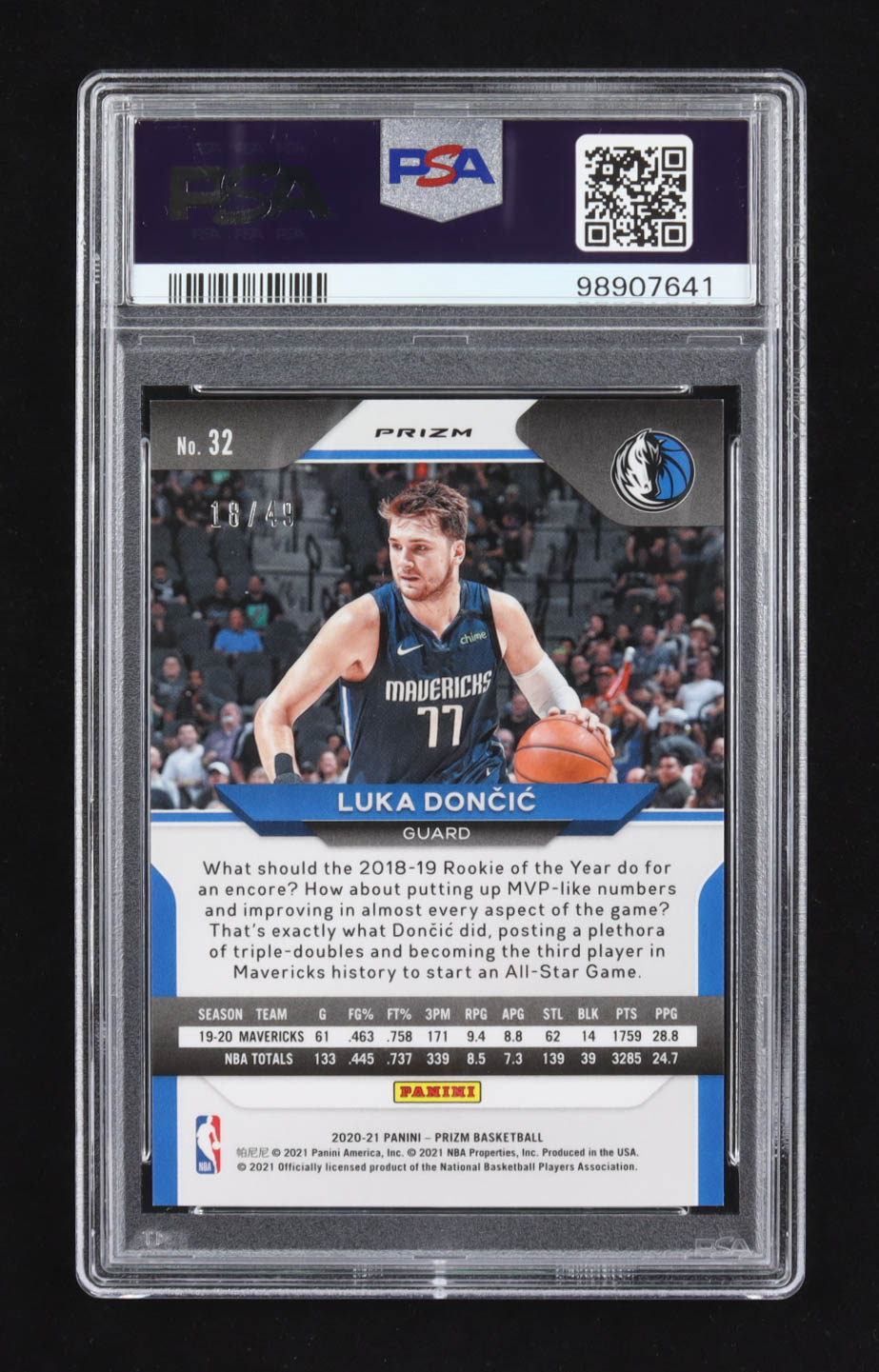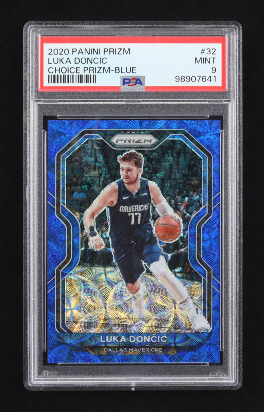 Luka Doncic 2020-21 Panini Prizm Prizms Choice Blue #32 #18/49 (PSA 9)