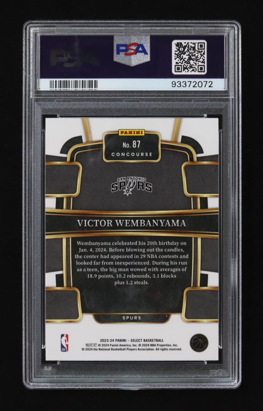 Victor Wembanyama 2023-24 Select Blue #87 RC (PSA 10)