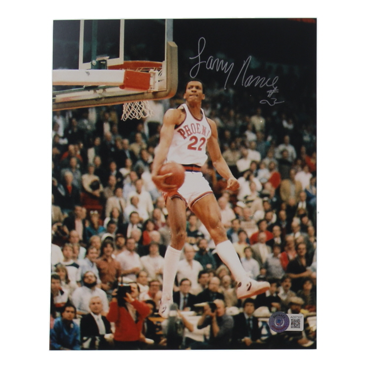 Photo measures 8" x 10" in size and has been hand-signed by Larry Nance (Phoenix Suns).