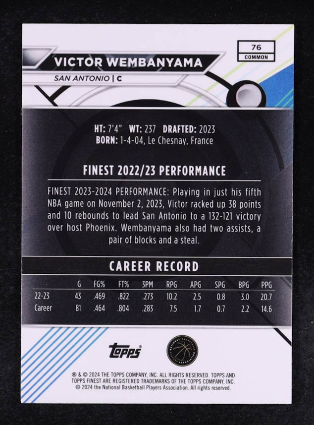 Victor Wembanyama 2023-24 Finest #76 RC