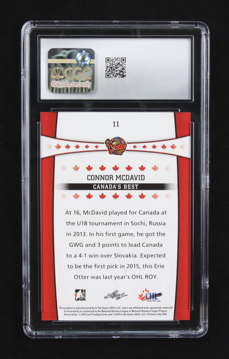 Connor McDavid 2015 ITG CHL Draft #11 Canada's Best RC (CGC 10)