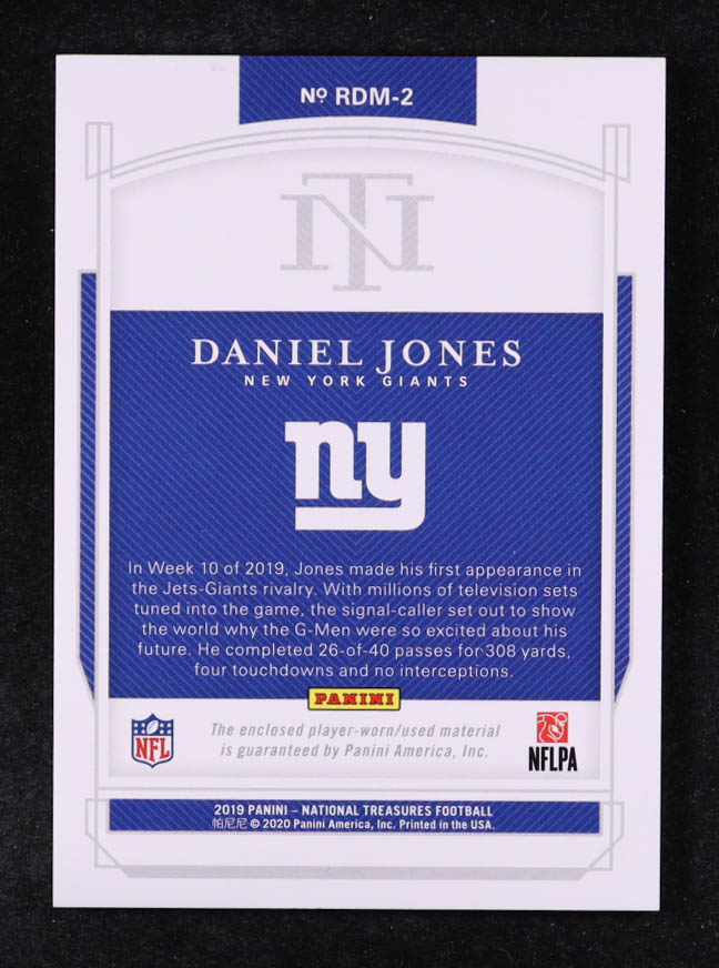 Daniel Jones 2019 Panini National Treasures Rookie Dual Materials #2 RC #43/99