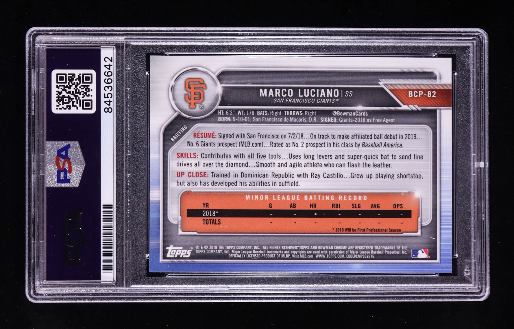 Marco Luciano Signed 2019 Bowman Chrome 1st #BCP-82 RC (PSA | Autograph Graded PSA 10)