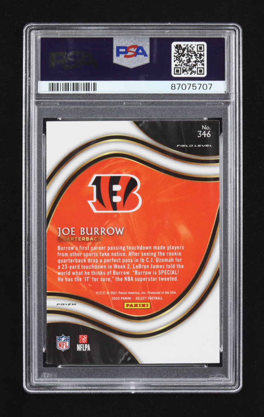 Joe Burrow 2020 Select Prizm Silver #346 RC (PSA 10)