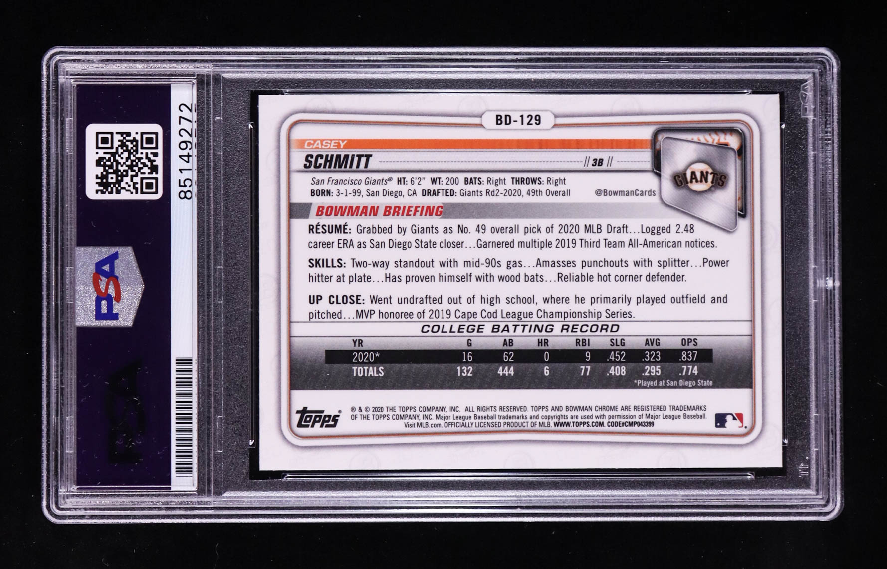 Casey Schmitt Signed 2020 Bowman Chrome 1st Sapphire #BD-129 RC (PSA)