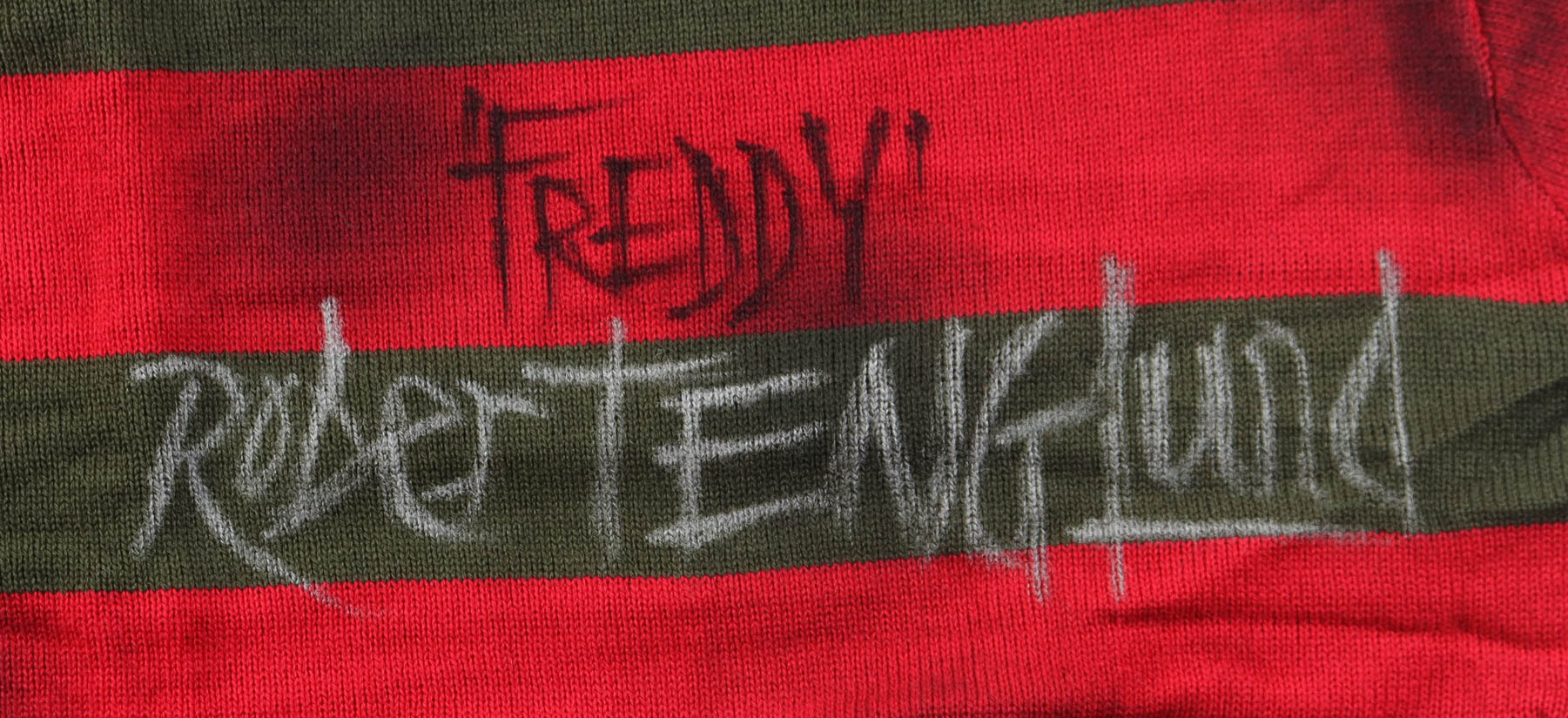 A Nightmare on Elm Street sweater, size XL. Hand-signed and inscribed by Robert Englunnd (Freddy Kreuger).