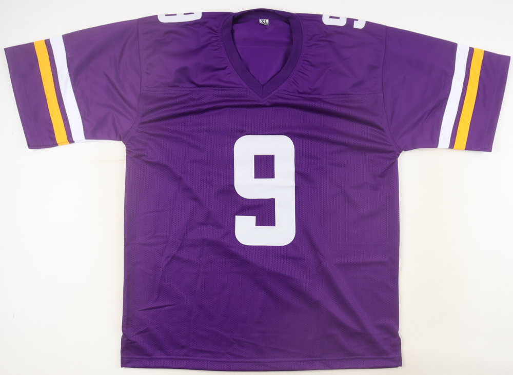 Custom jersey with everything sewn on, size XL. Hand-signed by J.J. McCarthy.
