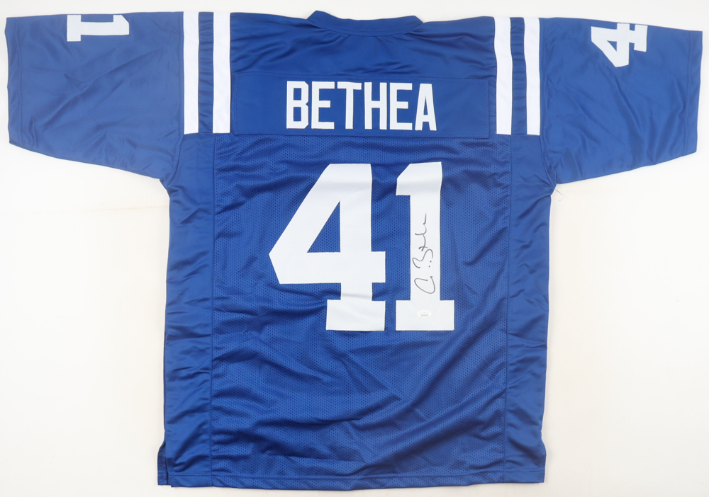 Custom jersey. Everything is sewn on, size XL. Hand-signed by Antoine Bethea.