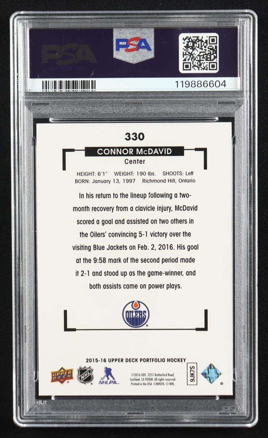 Connor McDavid 2015-16 Upper Deck Portfolio #330 RC (PSA 10)