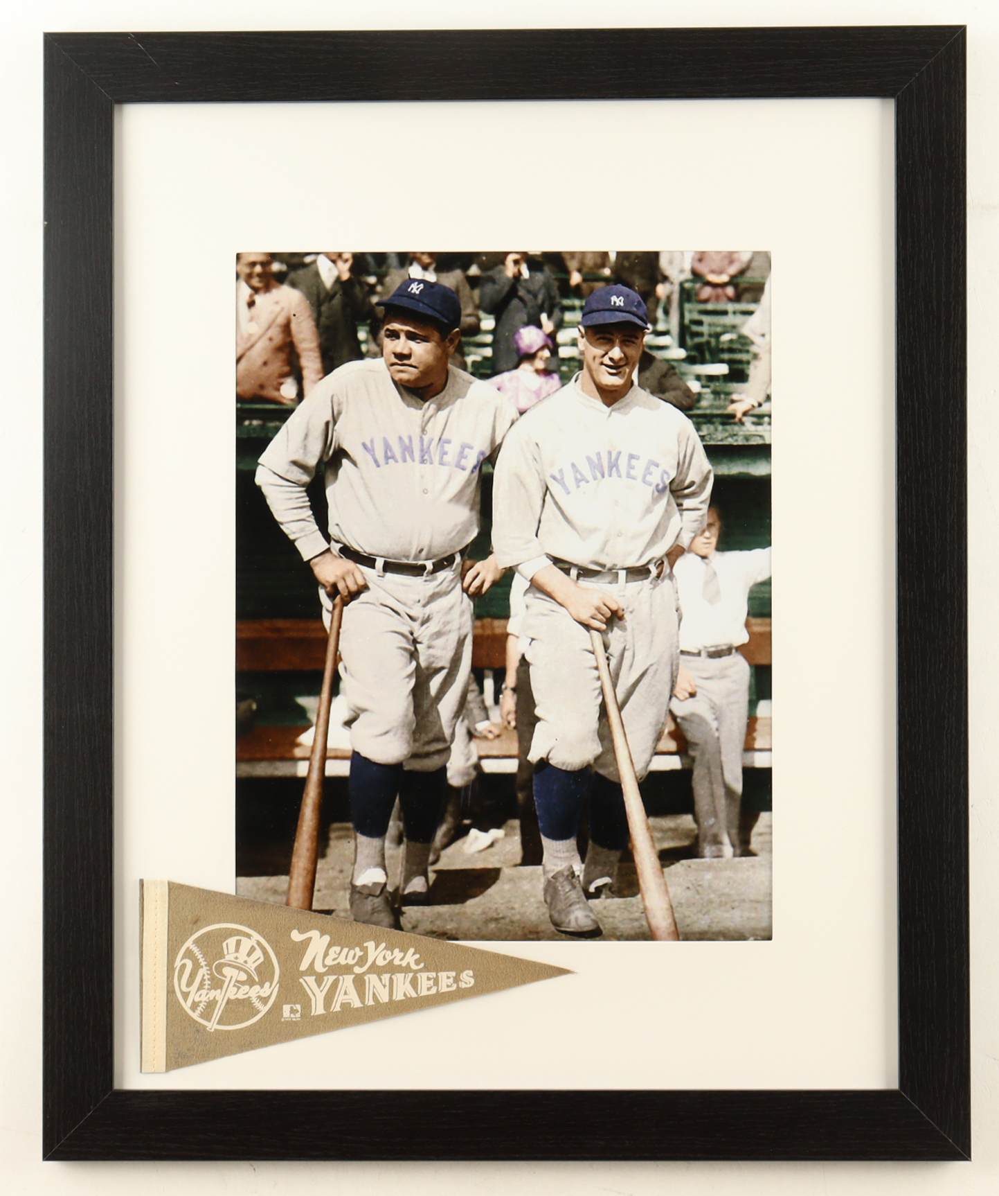 Babe Ruth & Lou Gehrig Custom Framed Photo Display with Yankees Pennant
