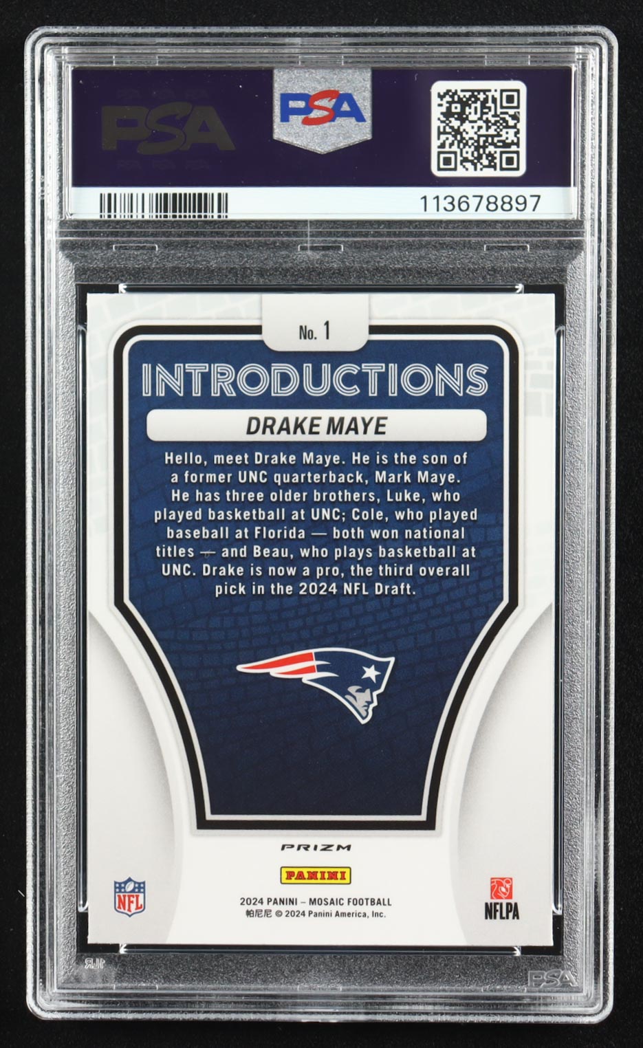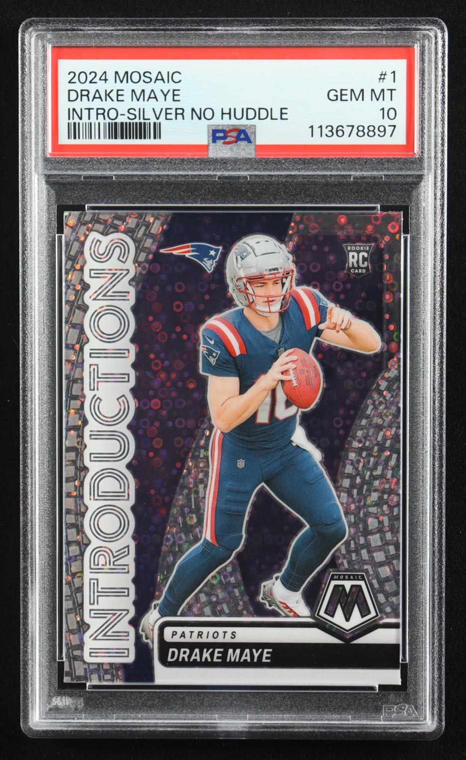 Drake Maye 2024 Panini Mosaic Introductions No Huddle Silver #1 RC (PSA 10)