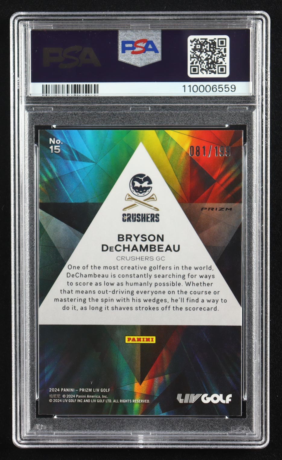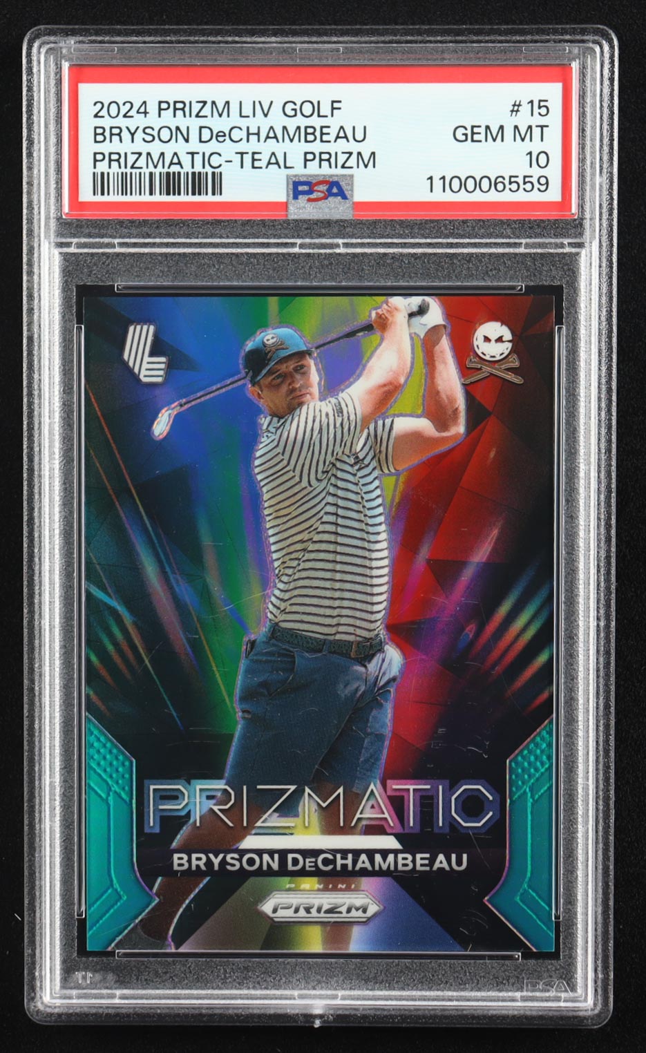 Bryson DeChambeau 2024 Panini Prizm LIV Prizmatic Prizms Teal #15 #081/199 (PSA 10)